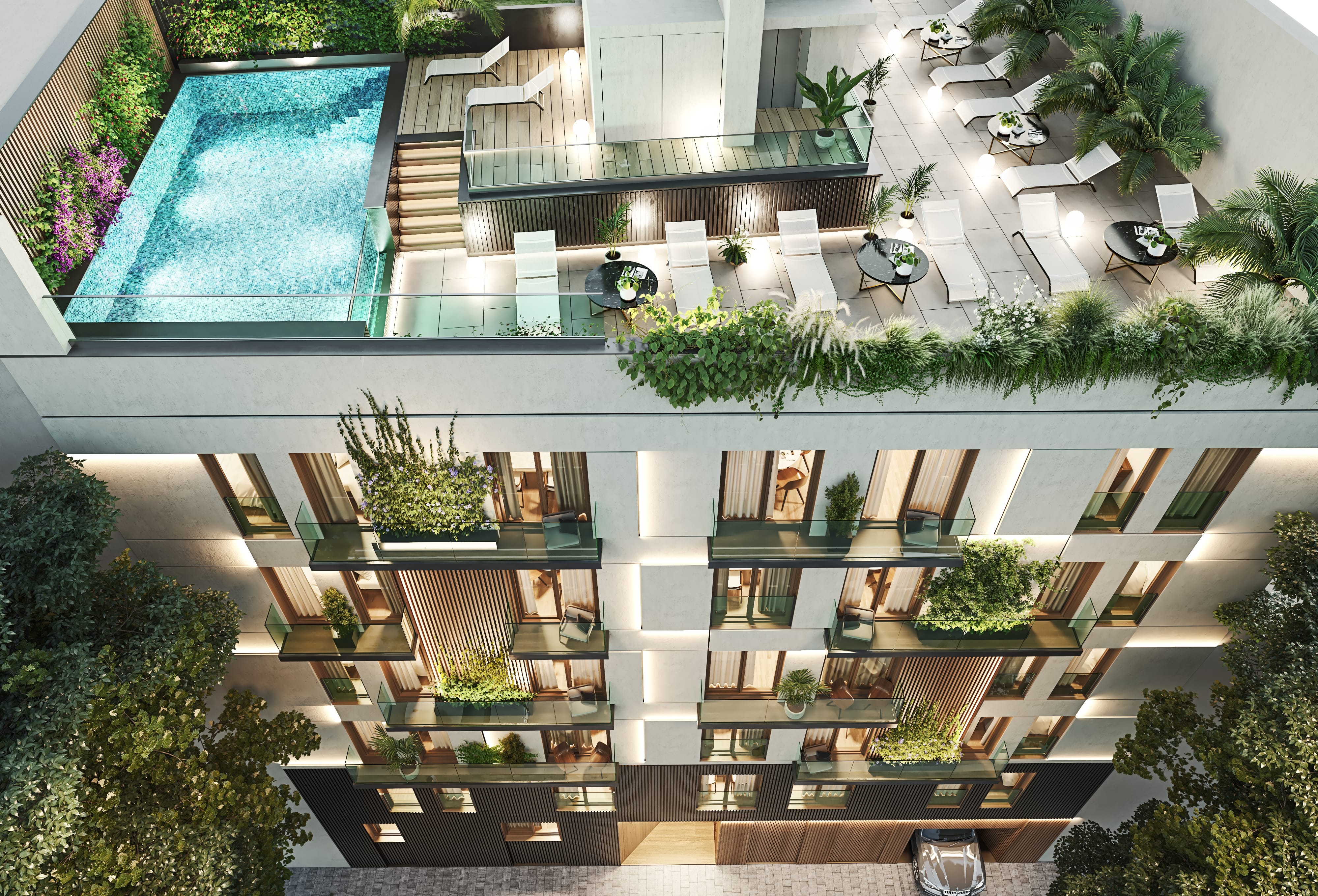 Exclusiva promoción de diseño contemporáneo situada en una ubicación privilegiada. Consta de viviendas de 1, 2 y 3 dormitorios, incluyendo dúplex con patios privativos y áticos con amplias terrazas. La promoción cuenta con piscina y solárium, plazas de garaje y trasteros.
