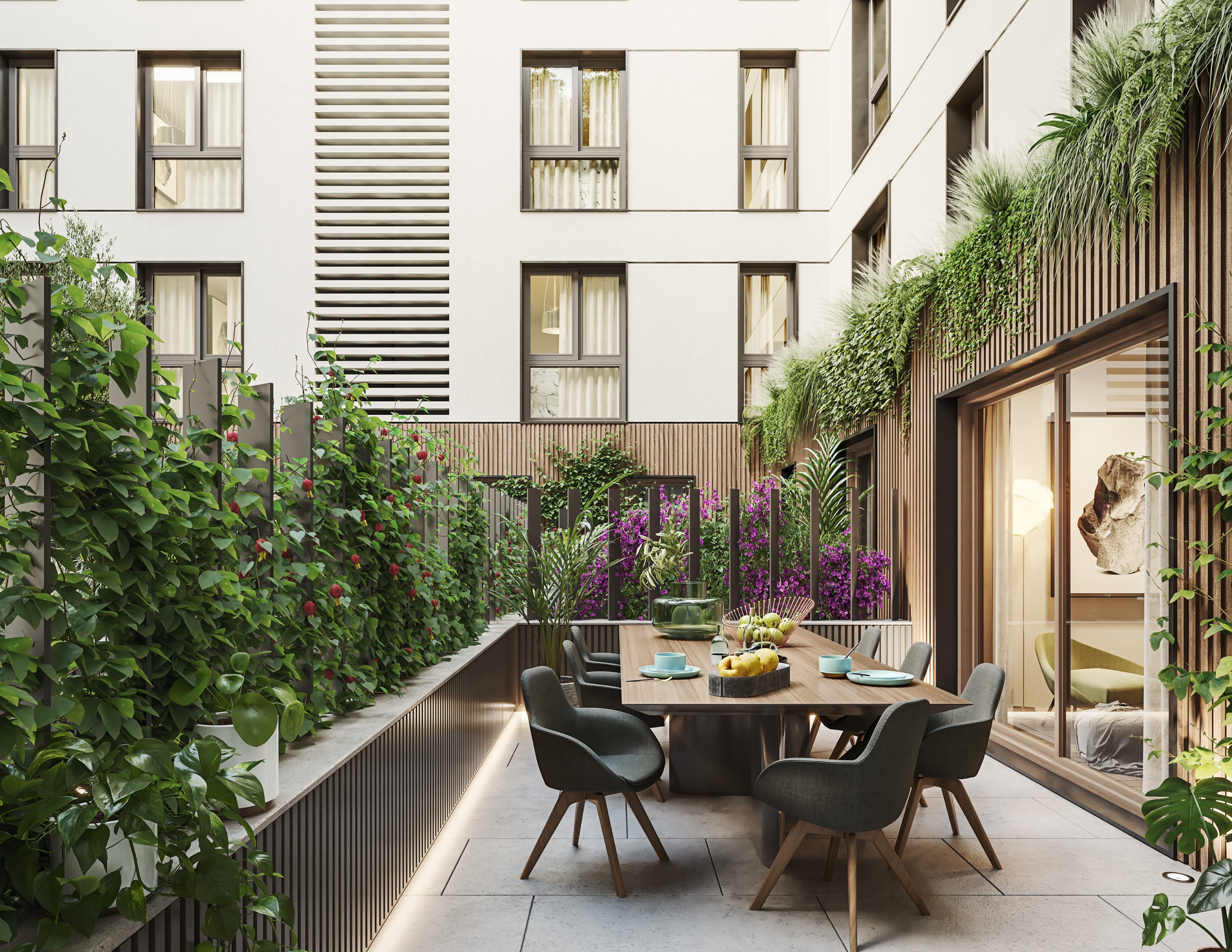 GS Cavestany propone espacios pensados para disfrutar del día a día y fomentar la vida familiar en un entorno acogedor. Comparte momentos en los patios privativos, relájate en el solárium o disfruta de un baño en la piscina. Todo ello en viviendas diseñadas al detalle, con estancias diáfanas, grandes terrazas y una ubicación privilegiada en Sevilla.